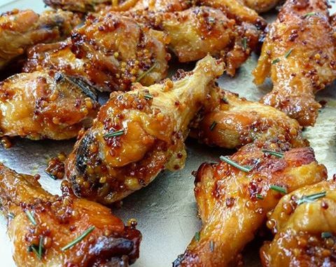 - In a medium size bowl, mix together dijon mustard, honey, and red wine vinegar. Pour over chicken.