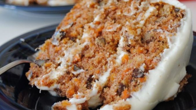 - Bake for 45 to 50 minutes in the preheated oven, until cake tests done with a toothpick. Cool for 10 minutes before removing from pan. When completely cooled, frost with cream cheese frosting.