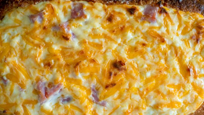 Mix the sour cream, cream cheese, cheddar cheese, ham, hot sauce, and Worcestershire sauce together in a bowl.