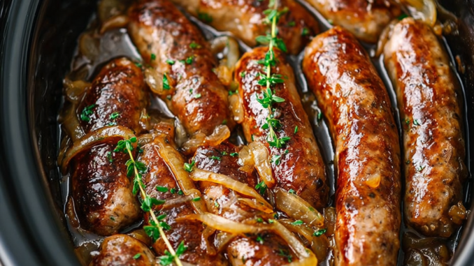 Slow Cooker 4-Ingredient Bangers and Onions