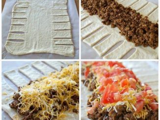 Ingredients 1 lb ground beef 1/2 onion, chopped 1 package taco seasoning 6 large flour tortillas 1 can refried beans 2 -3 cups shredded […]