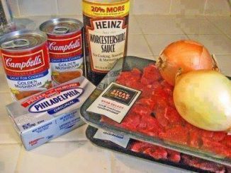 INGREDIENTS: 2 pounds cubed stew meat 2 cans Condensed Golden Mushroom Soup 1 largish onion diced 2-3-4 tabls of Worcestershire 1/2 cup water 8 oz […]