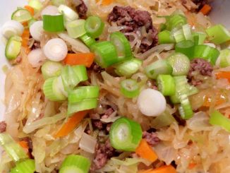 Egg Roll in a Bowl Ingredients : 1 lb ground sausage 1 bag dry coleslaw mix (shredded cabbage and carrots) 5 cloves garlic, minced 1/2 […]