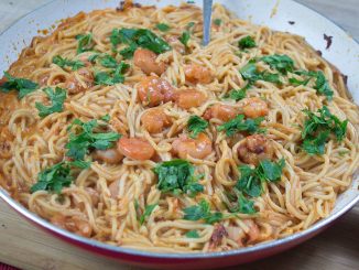 Ingredients : 8 oz spaghetti 8 oz medium shrimp peeled and deveined 1 Tbsp olive oil 3 cloves garlic minced 1 tsp paprika salt and […]